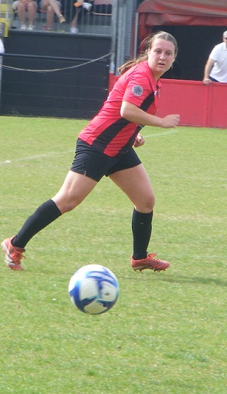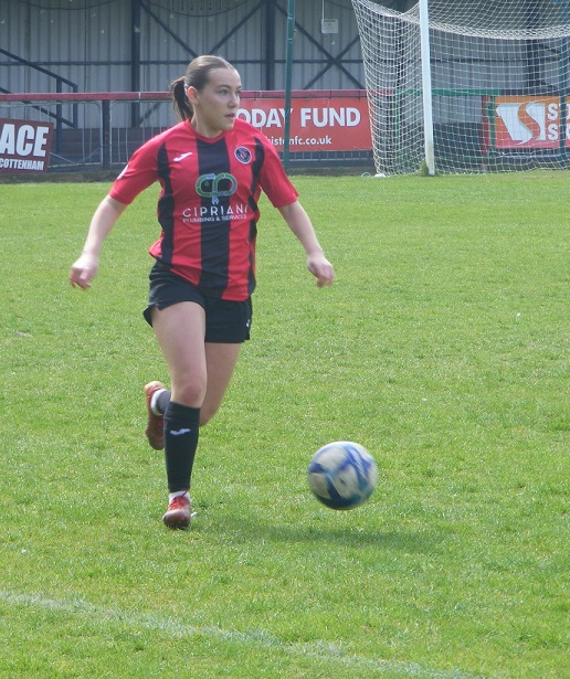 Kick-off slightly delayed with a crash on route seeing the Dunstable side arriving at the ground later than they would have liked to get their prep in. The visitors with a few absent including leading goal scorer Wille naming just the two on the bench. Histon with 5 available to call upon. It’s Dunstable to get the game underway kicking off the 1st half wearing blue shirts with white across the shoulders and sleeves, blue shorts and socks. Histon lined up opposite wearing red coloured shirts with black shorts and socks. The ball rolled back to the defence, sent long out to the right, Ellie Sargeant, Histon left back Mollie Childerley can see it safely out of play.