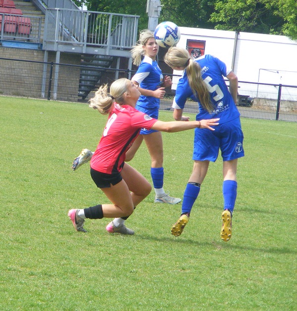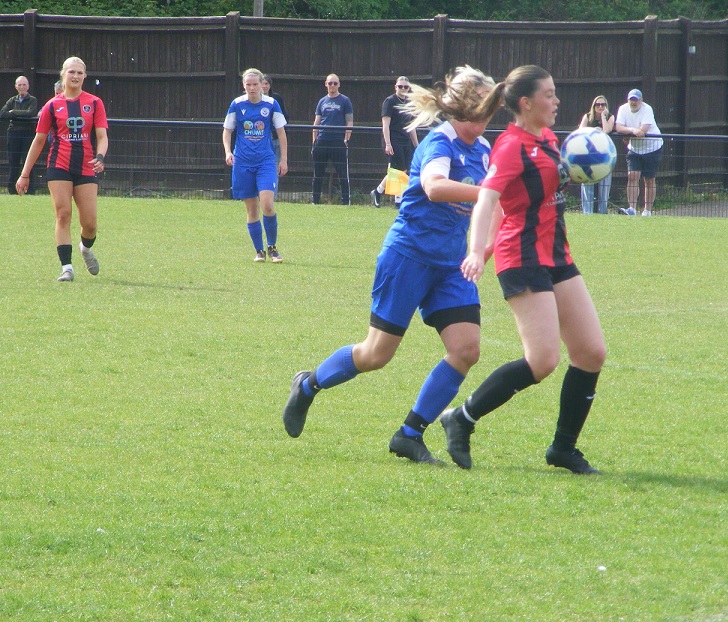 Nicholls chasing the ball down as it’s played into the left flank, Cook tracking back with her as she drives for the by-line sliding in to send the ball behind for a corner kick. Fired in from the left Cook turning it away to the top of the area. a snap shot from 25 yards out blazed over the bar. Molloy into Darvill right side had Surridge ahead of her the diagonal ball into the top of the area looking for Rees, Robinson coming for it getting hold of the ball first. Histon continue to push players on into the wings, Marden left side, Collins on the right her cross turned behind of Christie to win another corner.
