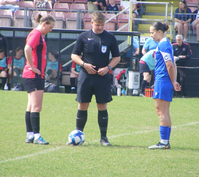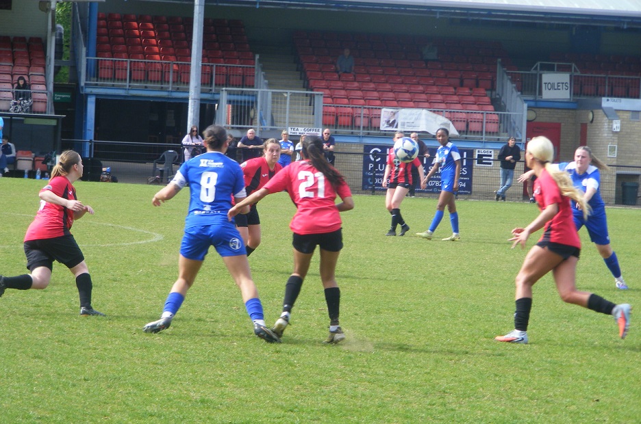 A lively start competitive as both go after the ball Banks drawing the foul, Davies putting the ball on up the line for Collins racing on with the ball her cross collected by Pursey Weedon. Darvill getting stuck in after the ball right side on for Rees turned on for Surridge looking to break in behind challenged by Childerley out for a throw. The Dunstable substitutes making an early impact at the start of the 2nd half Darvill up with Surridge on the right to win a corner kick. An in swinger a firm header from Leyland to clear the ball for the hosts.